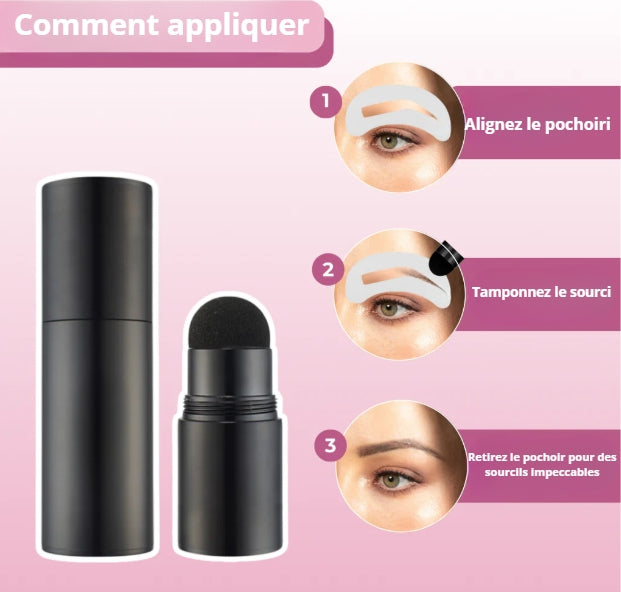 Il suffit de placer le pochoir flexible, d’appliquer la poudre avec le tampon, et découvrez vos nouveaux sourcils au rendu naturel.
